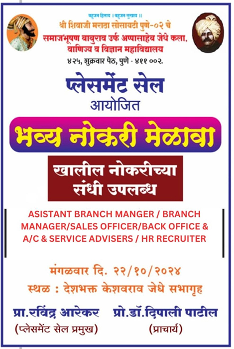 दि. 22 ऑक्टोबर २०२४ रोजी महाविद्यालयात उपस्थित राहावे.